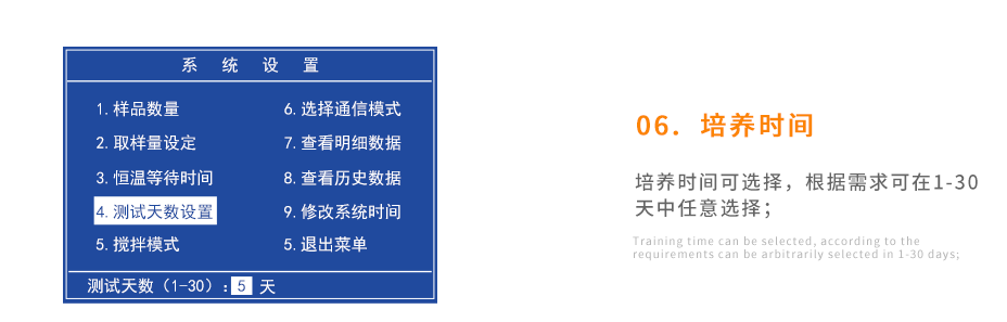 存儲空間大,可存儲20年歷史數據;培養周期可調節,根據需求可以選擇1-30天;